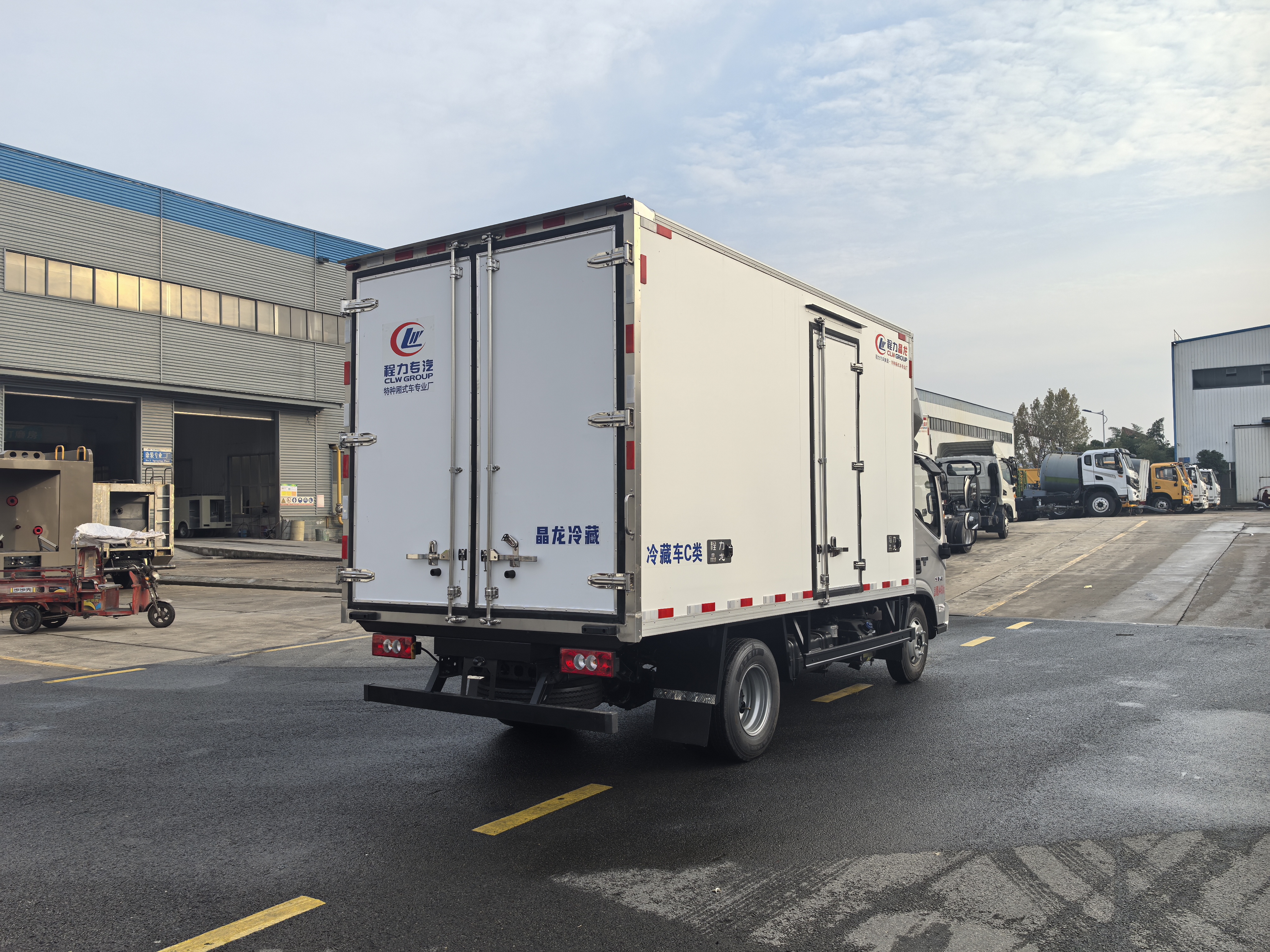 箱体采用轻量化结构设计,运用最新断热桥技术,采用大型恒温热压设备无缝合成,一次成型工艺。箱体内外玻璃钢,选用高密度XPS及聚氨酯保温材料,降温快、散热慢、保温效果达到国标A类标准。底板合成厚度达到110CM,具有超强的抗震、保温、耐用特性。车厢副车架及附件选用电镀工艺,防锈防腐,美观耐用。选用铝合金通风槽采用满焊工艺、下沉布置、一体成型,不渗漏,不起拱,不占用箱体容积。