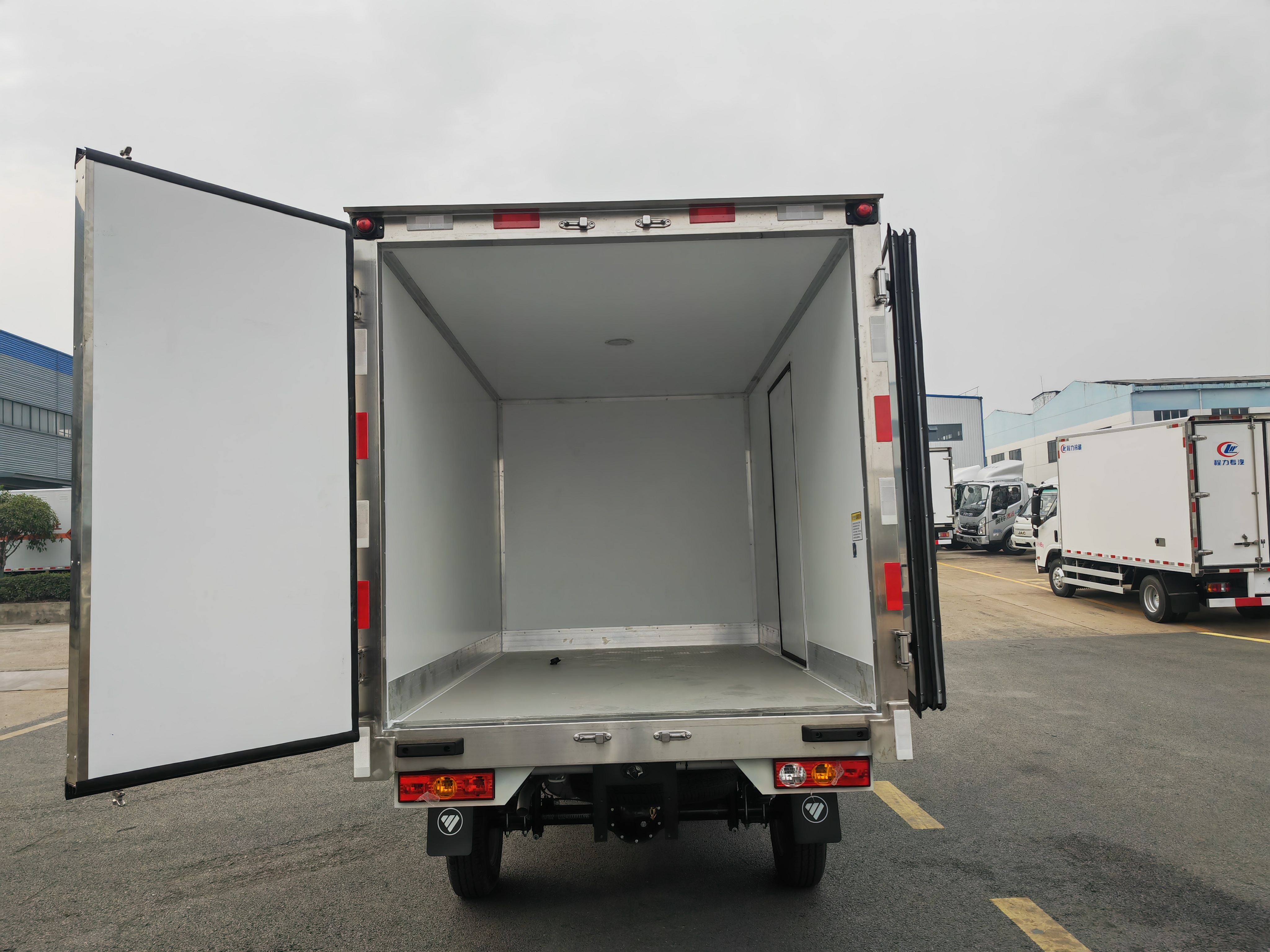 箱体采用轻量化结构设计,运用最新断热桥技术,采用大型恒温热压设备无缝合成,一次成型工艺。箱体内外玻璃钢,选用高密度XPS及聚氨酯保温材料,降温快、散热慢、保温效果达到国标A类标准。底板合成厚度达到110MM,具有超强的抗震、保温、耐用特性。车厢副车架及附件选用电镀工艺,防锈防腐,美观耐用。选用铝合金通风槽采用满焊工艺、下沉布置、一体成型,不渗漏,不起拱,不占用箱体容积。