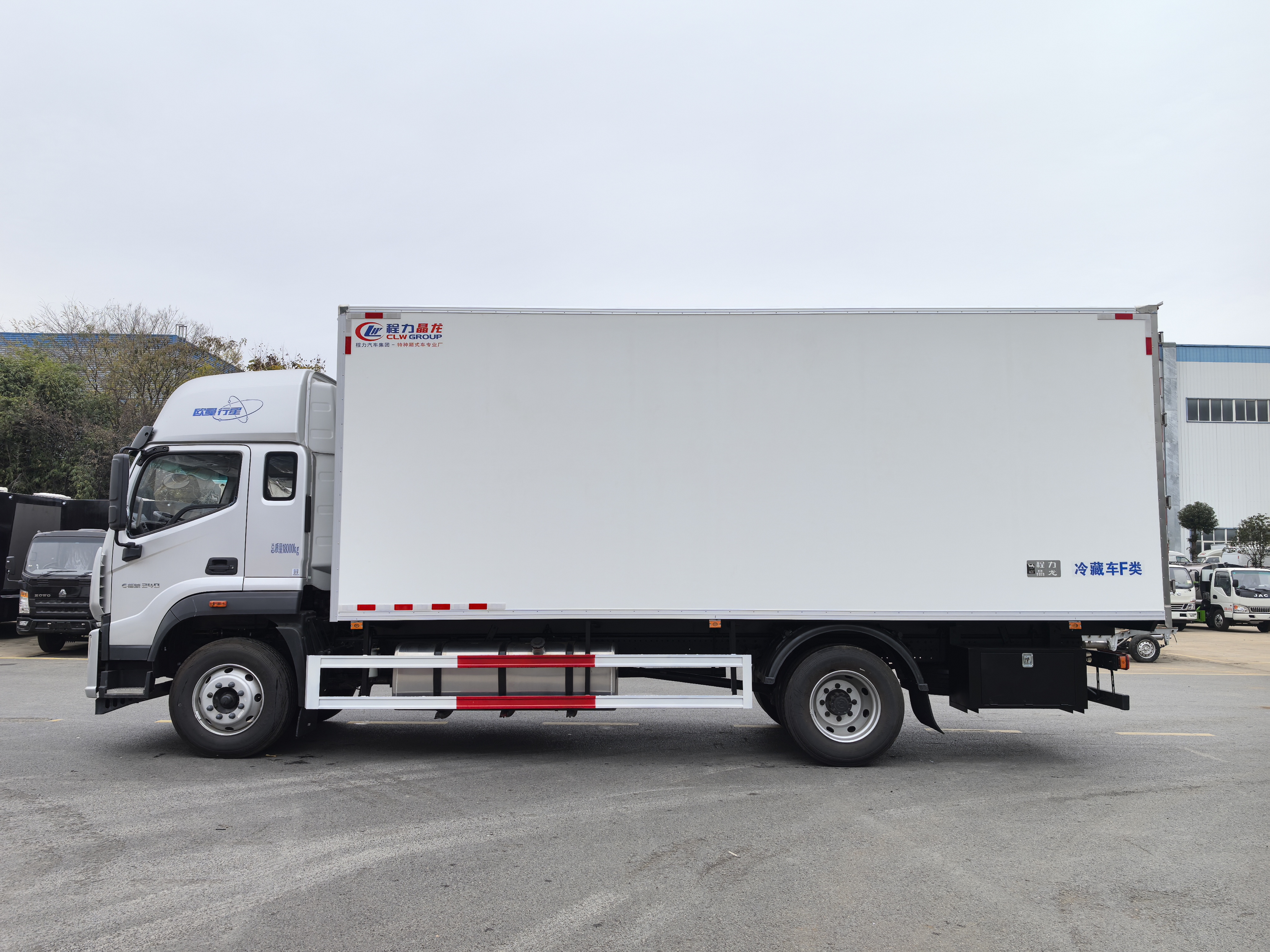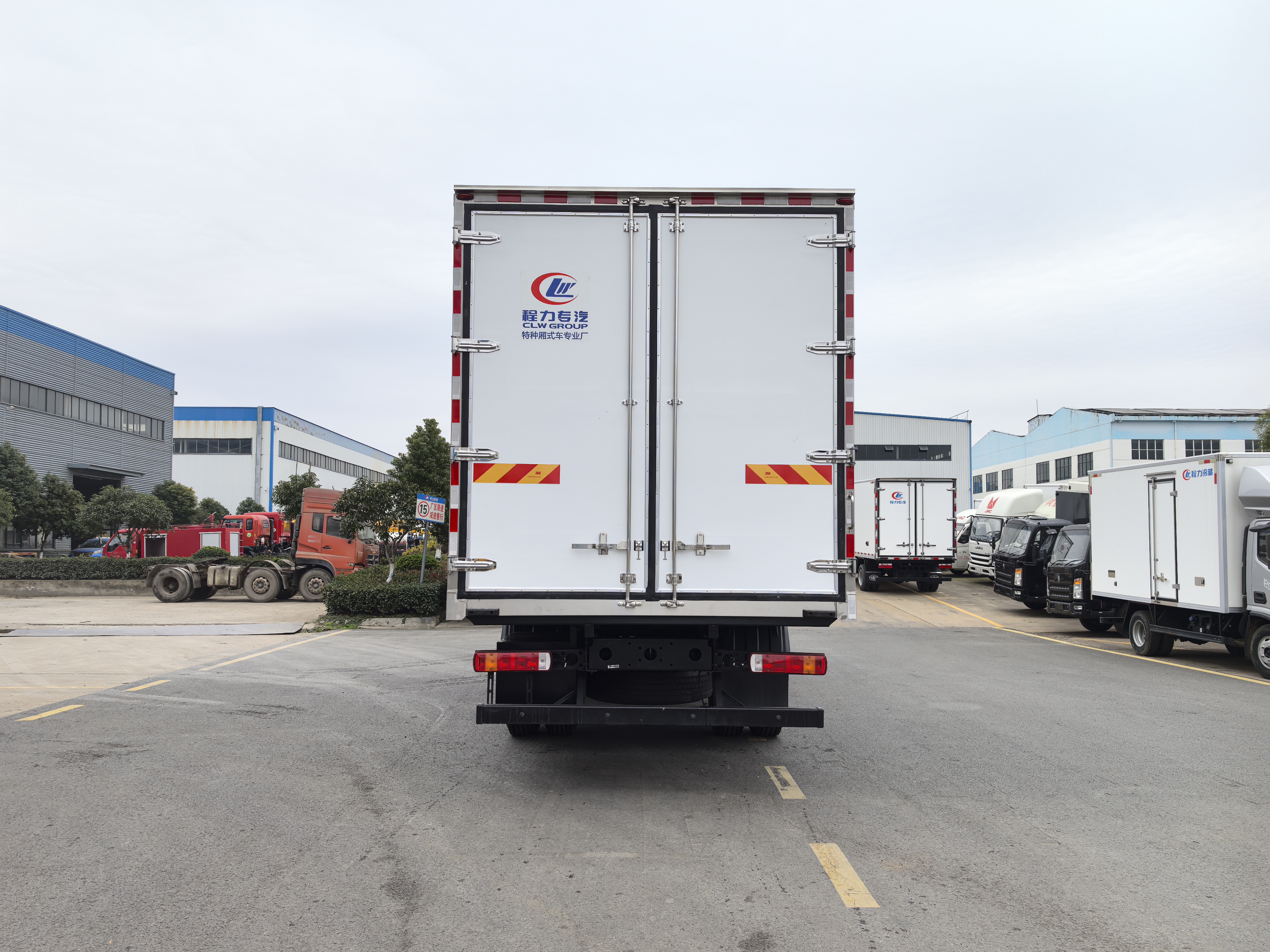 箱体采用轻量化结构设计,运用最新断热桥技术,采用大型恒温热压设备无缝合成,一次成型工艺。箱体内外玻璃钢,选用高密度XPS及聚氨酯保温材料,降温快、散热慢、保温效果达到国标A类标准。底板合成厚度达到110mm,具有超强的抗震、保温、耐用特性。车厢副车架及附件选用电镀工艺,防锈防腐,美观耐用。选用铝合金通风槽采用满焊工艺、下沉布置、一体成型,不渗漏,不起拱,不占用箱体容积。