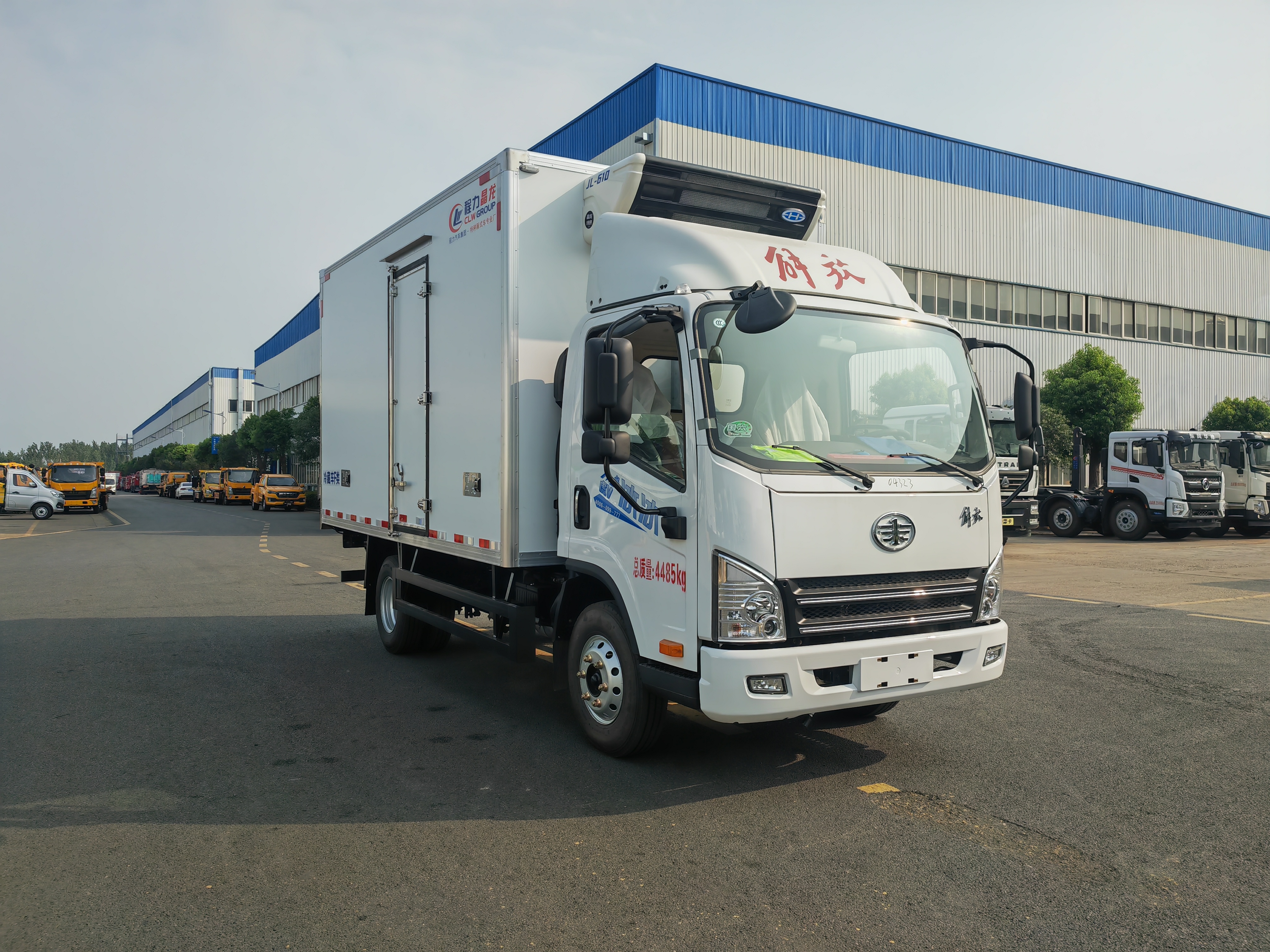 箱体采用轻量化结构设计,运用最新断热桥技术,采用大型恒温热压设备无缝合成,一次成型工艺。箱体内外玻璃钢,选用高密度XPS及聚氨酯保温材料,降温快、散热慢、保温效果达到国标A类标准。底板合成厚度达到110MM,具有超强的抗震、保温、耐用特性。车厢副车架及附件选用电镀工艺,防锈防腐,美观耐用。选用铝合金通风槽采用满焊工艺、下沉布置、一体成型,不渗漏,不起拱,不占用箱体容积。