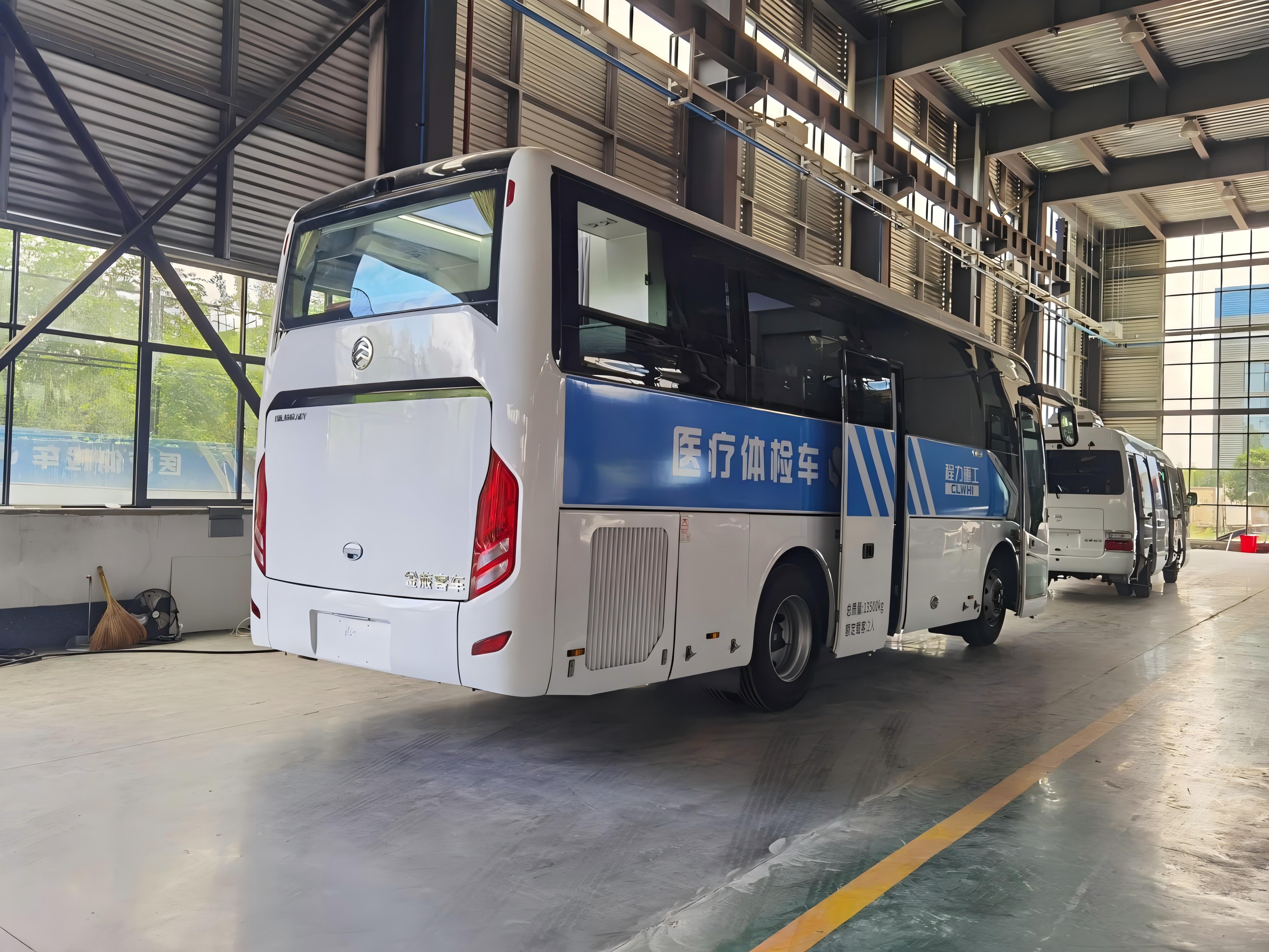 体检车可实现,现场问诊,身体数据采集(身高、体重、三围、血压),监测数据采集存储(X 光、B 超、心电图),生化采样(血常规、尿常规、血糖、乙肝 5 项)。其中搭载了移动通讯装备的体 检车,还能实现远程医疗会诊,可用于现场体检、简易治疗,是一个移动体检中心和流动诊