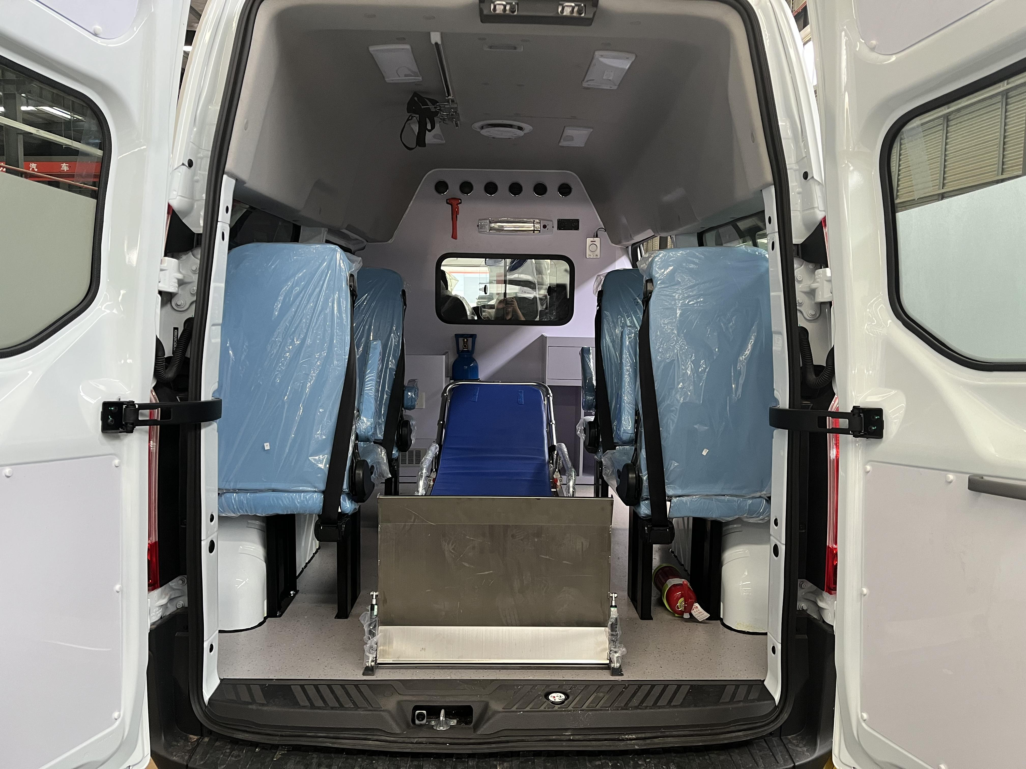 新全顺中轴中顶转运型救护车采用江铃福特推出的福特新全顺中轴车型改装。采用福特