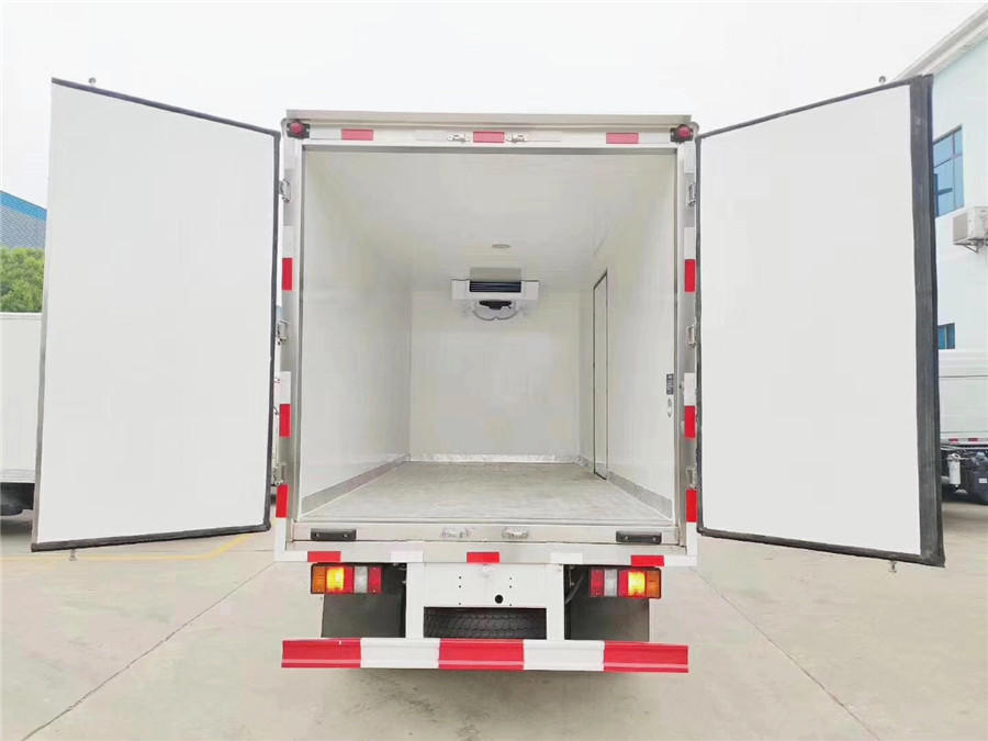 九 选装配置:可选装厢体侧门(单侧门或双开门),可选装铝合金导风槽(导风槽有助于冷气循环,提升制冷效果),可选装厢体顶部加固肉勾滑道(直滑道 或 对接互通式拐弯滑道)。可选装厢体内部采用全面不锈钢材质(海鲜运输必须加装,海水有腐蚀性),可选装280V-380V外接电源(停车熄火后可插电冷机继续制冷工作),可选装温湿度监控记录仪(带打印功能)。