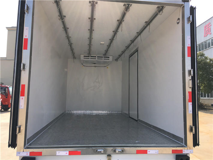 九 选装配置:可选装厢体侧门(单侧门或双开门),可选装铝合金导风槽(导风槽有助于冷气循环,提升制冷效果),可选装厢体顶部加固肉勾滑道(直滑道 或 对接互通式拐弯滑道)。可选装厢体内部采用全面不锈钢材质(海鲜运输必须加装,海水有腐蚀性),可选装280V-380V外接电源(停车熄火后可插电冷机继续制冷工作),可选装温湿度监控记录仪(带打印功能)。