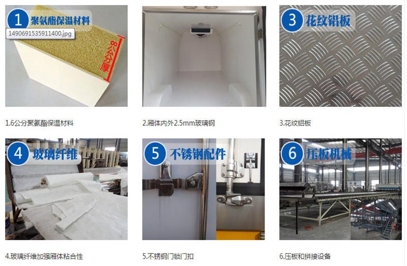 七 厢体配置:我公司面包式冷藏车工艺采用专用模具压制成型,保温性能达到国家A级标准,保温材料为无缝隙填充聚氨酯发泡,厢体内外采用高强度玻璃钢板材质,树脂胶无缝连接,后配全密封双开门,不锈钢门框包边,不锈钢合页和锁件,厢体内部加装LED夜间照明灯。