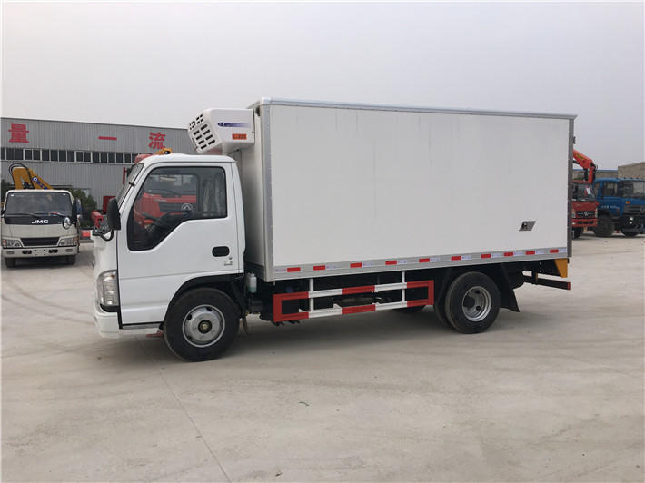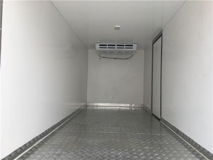 2.上装配置:冷藏厢体内部有效尺寸:长4.1米×宽1.74米×高1.75米,厢体蒙皮采用内外玻璃钢,随客户选择内置槽钢焊接骨架或者玻璃纤维超轻高强度骨架,8cm厚聚氨酯发泡保温层,