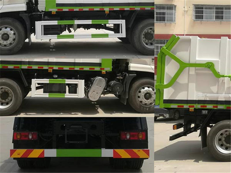 液压系统:由油箱、油泵、多路换向阀、液压缸、滤油器和管路组成,该系统能实现装卸垃圾的各种专用功能。