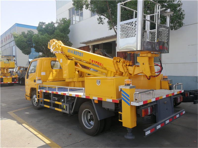 国六江铃14米伸缩臂高空作业车,整车上蓝牌。底盘采用江铃原来国六115江铃五十铃发动机,空调、助力、abs、电动玻璃、中控锁、多功能方向盘。